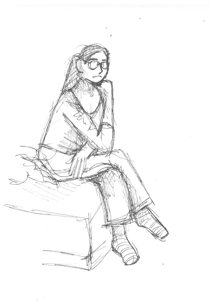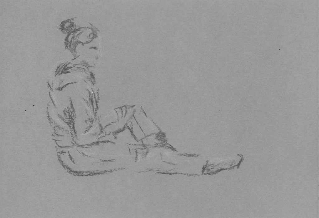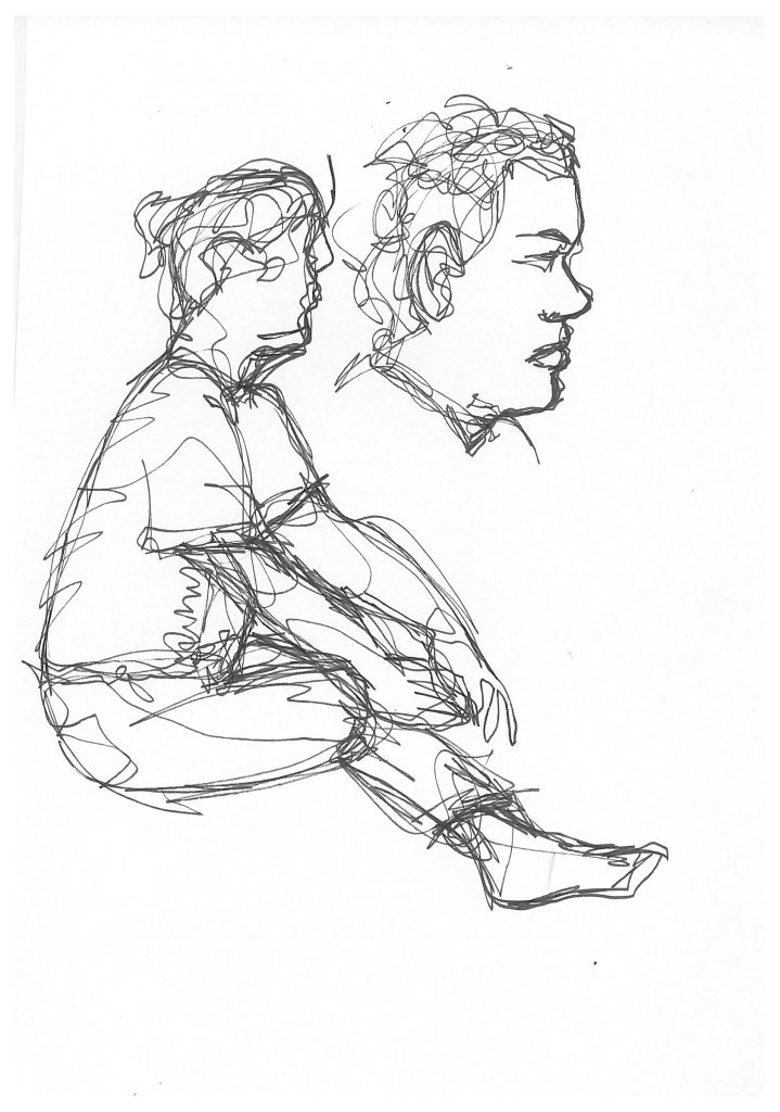 Hier haben wir versucht, verschiedene Techniken und Papiere für das Skizzieren anzuwenden. Das sollte möglichst schnell gehen, damit wir nur reduziert skizzieren.